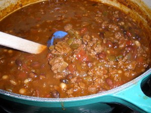 Three years ago this week, I made a big pot of black bean chili as a birthday present for my nephew. I portioned it out and froze it, except that H. Katrina arrived before I could gift the chili. Pictured is this year’s pot of birthday chili, and here’s hoping that TS Faye won’t turn out the power in coming days so that the chili makes it to its intended recipient.