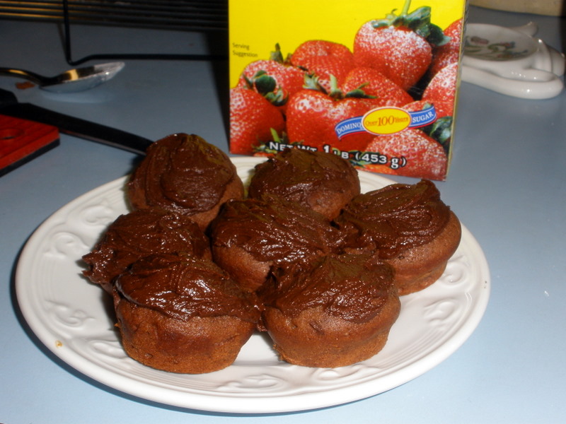 Over a couple of days, the icing will go a little grainy.  Then again, I can’t imagine these tiny cakes lasting more than a few days at my house.  Next time, I’ll pipe a little filling into each one, or maybe top ’em with raspberry jam instead of frosting.