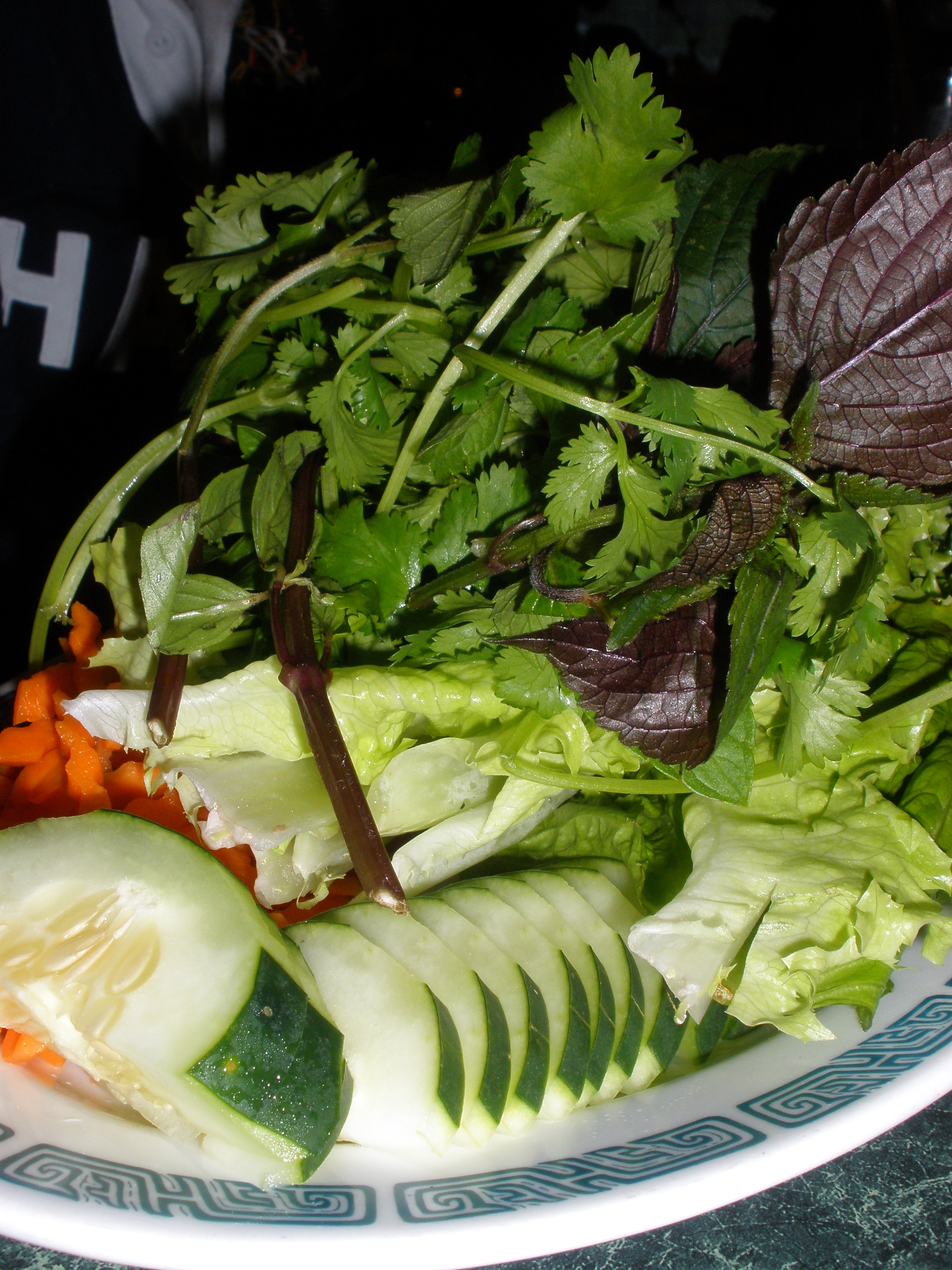 - bo nung dam (beef fondue in vinegar; accompanied by herbs, lettuce, carrots, cucumbers, and rice papers)