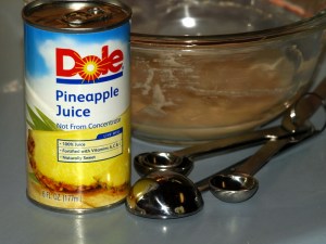 Armed with lots of new knowledge, I’m trying again. I mixed 1/4 cup pineapple juice with 3-1/2 T flour (half unbleached bread flour, half white whole wheat). For the first 48 hours, I’ll stir the starter three or four times, vigorously, for at least a minute (yeast loves fresh oxygen and leuconostoc hates it). After 24 hours, the starter looks exactly the same….which is progress, I guess, as it seems I’m not growing bad, gassy leuconostoc!