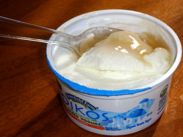 I’m a yogurt junkie, but I don’t make it myself.  I adore Fage Greek-style yogurt, but the nearest source of Fage is 20 miles from my house.  So I was pretty stoked to see organic Oikos with honey at my local Wal-Mart.  (Yes, we semi-rural folks have limited options when it comes to groceries, but the lack of gourmet groceries is worth the improved access to locally grown & slaughtered meat, among other things.)  Anyway, Oikos is the Greek-style yogurt made by Stonyfield Farms…so even though I bought my yogurt at the world’s largest retailer (and largest public corporation), my purchase helped support American agriculture.