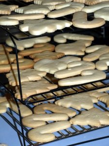 Not this year: King Arthur Flour’s recipe for Holiday Butter Cookies produced a firm-yet-tender cookie that’s just too good to ice. I began baking with full intentions to decorate with abandon; after sampling a broken cookie straight from the oven, I quickly changed my mind. The texture is slightly sandy, like a shortbread (thanks to the cornstarch in the powdered sugar), and the delicate, not-too-sweet flavors of almond, vanilla, and browned butter combine to produce a cookie in need of no further embellishment.