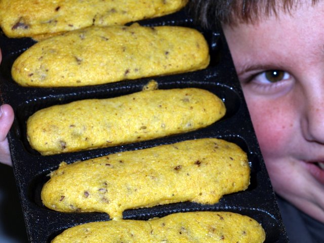 What do you get when you combine browned pork breakfast sausage and a box of Jiffy corn bread mix? Some folks might call it sausage cornbread, but my nephew coined the term “meat muffin.” Oh, yeah: this is every Southern kid’s favorite kind of shortcut home cooking. Hot out the oven, split and reheated with butter, or recycled into cornbread dressing, meat muffins are cornbread buttered from the inside out.
