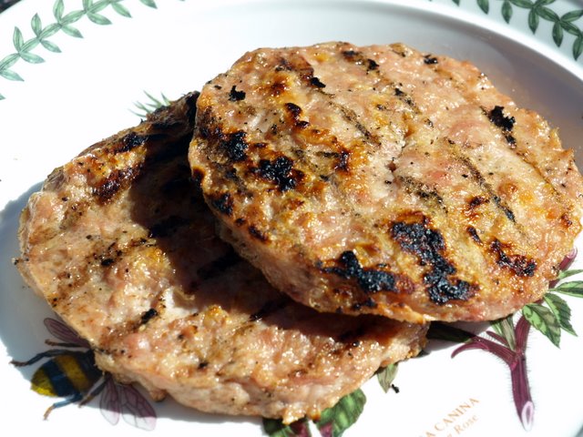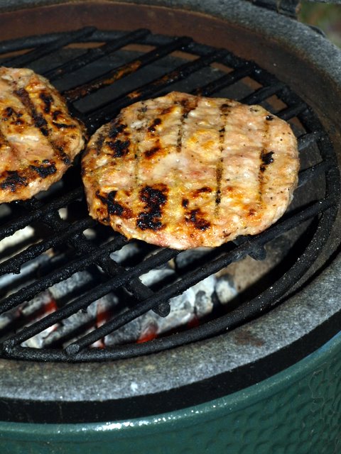 Sigh. Why didn’t I follow my usual rule? (Here’s the rule: don’t buy pre-fab meat items unless they’re sourced from a Cajun smokehouse!) The raw patties smelled fine, a little fragrant with onion and speckled with a bit of black pepper. I fired up my Mini Green Egg and cooked the patties according to package instructions, just 4 minutes per side. They smelled fine, browned just a bit, and looked mighty fine at the end of 8 minutes.