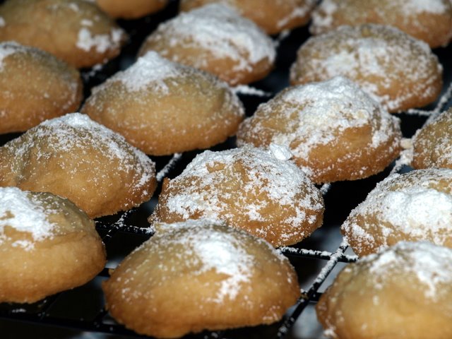 I made a few tiny changes to the recipe–I used salted butter and omitted the salt added to the dough, and I used high-quality vanilla extract rather than scraping a vanilla bean into the dough.  The resulting cookie was tender, with a crispy, nutty brown edge.  I sifted a bit of powdered sugar over the tops while the cookies were still warm; it melts a bit, making a thin layer of buttery sugar.