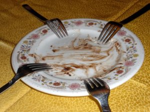 One perfect slab of tiramisu, plus four forks….