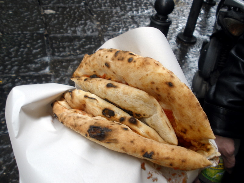 Or, stroll down the street to di Matteo and buy a pizza al forno to munch while walking along. This grand treat, folded into quarters and handed over swathed in a paper wrapper entirely inadequate to the task of containing such deliciousness, sets you back 1 euro (~$1.40): easily the best euro you’ll ever spend.