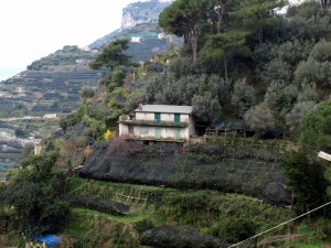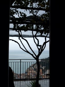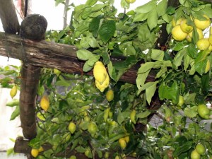Villa Maria, an agriturismo balanced in the hills above the town of Minori, within view of Ravello’s famous Villa Cimbrone, produces lemon and olive products from terraced trees right on the property. The family-owned farm & guesthouse boasts more than several hundred lemon trees; the trees shade the rooms’ terraces, overlooking the terra-cotta rooftops of Minori in the valley below. Lemon-centric dishes emerging from the kitchen in mid-February included a stellar breakfast cake filled with lemon curd, lemon-glazed grilled swordfish and squid, fresh, locally-caught octopus marinated with olive oil and lemon, an absolutely stupendous lemon jam and and, of course, magnificent, handmade, small-batch limoncello. Cloudy with lemon essence, gently alcoholic, only faintly sweet, the limoncello tasted like liquid sunlight, bottled on a warm spring afternoon by happy, singing people. (Okay, maybe it contained more alcohol than I initially thought…)