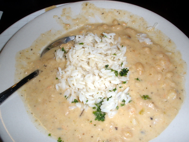 Should you find the workweek dragging due to spring fever, start looking forward to Thursday, when you can eat Cafe Reconcile’s (1631 Oretha Castle Haley Blvd, New Orleans) lunch special of creamy white beans & shrimp. (The photo alone makes my mouth water.) Shrimp & white beans are a common pairing in eastern Acadiana (the part of south Louisiana east of the Atchafalaya basin). Most often, the shrimp are fried, and the white beans are ladled over a mound of slightly sticky, medium grain rice. Reconcile’s take on the classic pairs cooked-down beans with a touch of cream and tender, mid-size Gulf shrimp.