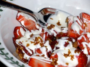 Is lightly sweetened creme fraiche the perfect fresh-strawberry topping? Creme fraiche’s tang is more interesting than the fluffly sweetness of whipped cream. Except, now that I think about it, all decadence aside, ultra-rich mascarpone might just have the edge over creme fraiche.
