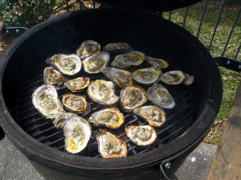 Yes, indeed, there is something exponentially better: char-grilled oysters. Oysters on the halfshell, liberally basted with a mixture of buttery oil, black pepper, white pepper, garlic, parsley, and grated parmesan cheese, set atop a hot charcoal fire and roasted until bubbly.