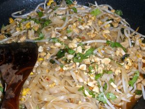 Mark Bittmann’s “the Minimalist” column for the New York Times leaves me hot and cold. Sometimes, he’s pared a dish down to its spot-on essentials; other times, I think, “who needs a recipe for something so simple?” But I’m grateful for his recent pad thai recipe: it is easy, delicious, and made with things I routinely keep in the kitchen. So maybe most people don’t keep tamarind paste on hand, or fish sauce, or rice noodles (but I do). Thanks to Bittmann, now I can make a pad thai as good as any found in south Louisiana.