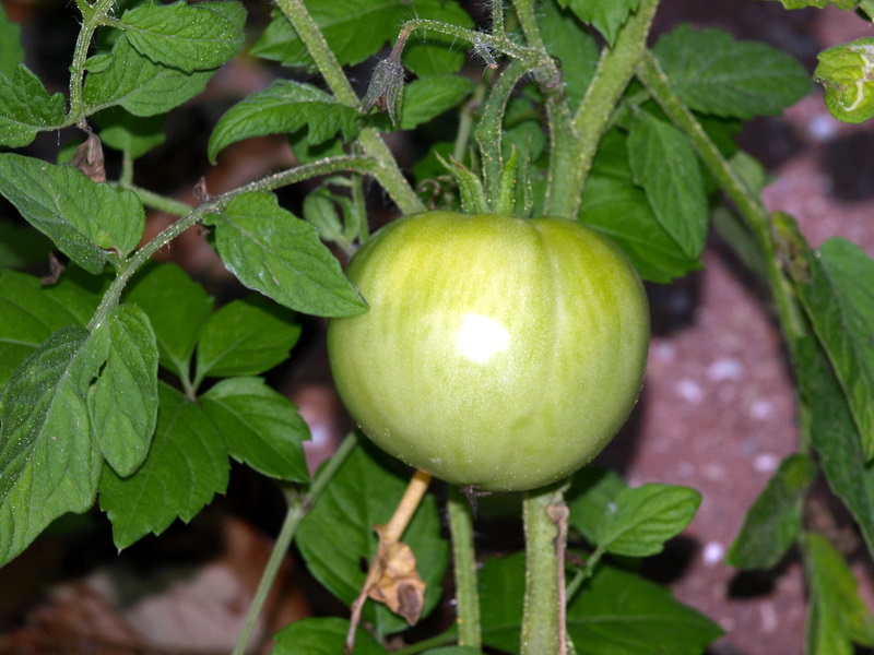 I just harvested and ate my first ripe tomato — could have used another day on the vine but I couldn’t restrain myself. The rest have a couple of weeks more to ripen before they get blasted by the heat or otherwise we’ll be eating a lot of fried green tomatoes. I recently read that you can pull the whole plant with the green tomatoes, hang it upside down, and the tomatoes will continue to ripen. I may have to try that.
