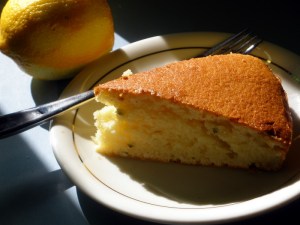 This time, I (mostly) followed her “Riviera Yogurt Cake” variation (p 225), which calls for Greek yogurt, extra-virgin olive oil, and chopped mint, as well as the usual lemon zest and vanilla.  The resulting cake, nutty with a hint of mint, reminds me of the breakfast cakes found all over southern Italy.  It is very good plain and even better when split, toasted, and spread with lemon marmellata or jam.