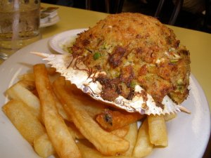 And get a load of this stuffed crab, mounded softball-high in a real crab shell (not one of those phony, pressed-aluminum disposable trifles). Thick with succulent claw meat, it is deep fried, not baked.