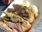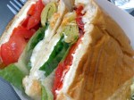 Above are two daily special sandwiches, the cuban sandwich and “pot roast on bread”, as well as a veggie melt overflowing with roasted peppers, tomatoes, romaine, basil, goat cheese, and artichoke hearts.  The sandwiches,  served on pressed french bread, include rotating side choices of chips, potato salad, pasta salad, and  a sweet, vinegary five-bean medley.  Seating is limited to a single picnic table in the Uptown Square parking lot, but the levee and Audubon park are just steps away.