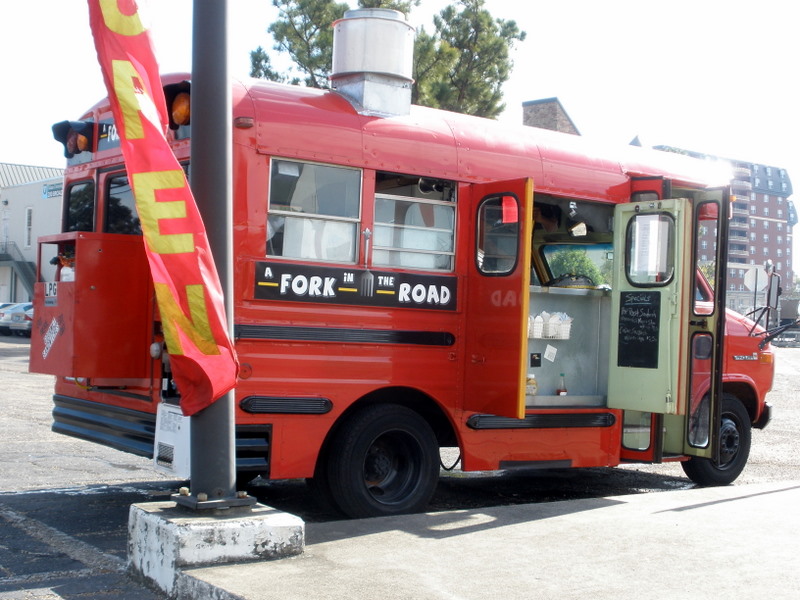 Cooler weather equals al fresco dining here in the subtropics.  At long last, we can sit outside without sweating, being sucked dry by mosquitos, or having the milk in a cappucino sour in the heat before we finish drinking it.  In New Orleans, two (non-taco, daytime) food trucks are serving up tasty lunch-hour bites outdoors, perfect for enjoying fresh breezes and abundant sunshine: