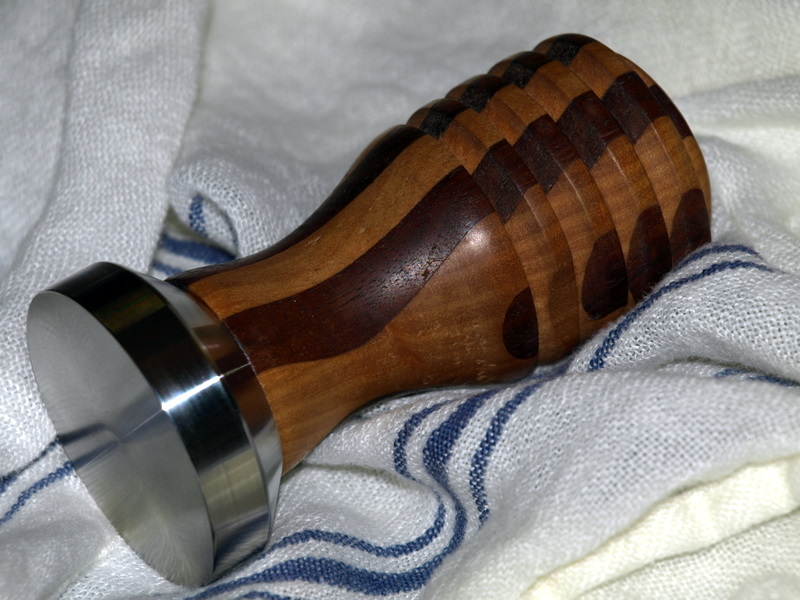 How about a turned-wood tamper, handcrafted by Susan Spicer’s husband Chip. Orleans Coffee Exchange has a limited number of his tampers, available in various sizes, priced around $40. Don’t know what size to buy? You know every coffee geek is dying to tell you about his/her espresso machine and certainly knows the diameter, in millimeters, of said machine’s portafilter. Just pretend you’re in the market for an espresso machine and ask a few questions about larger diameter vs. smaller, or double-walled vs. single portafilters. You’ll find out what you need to know.