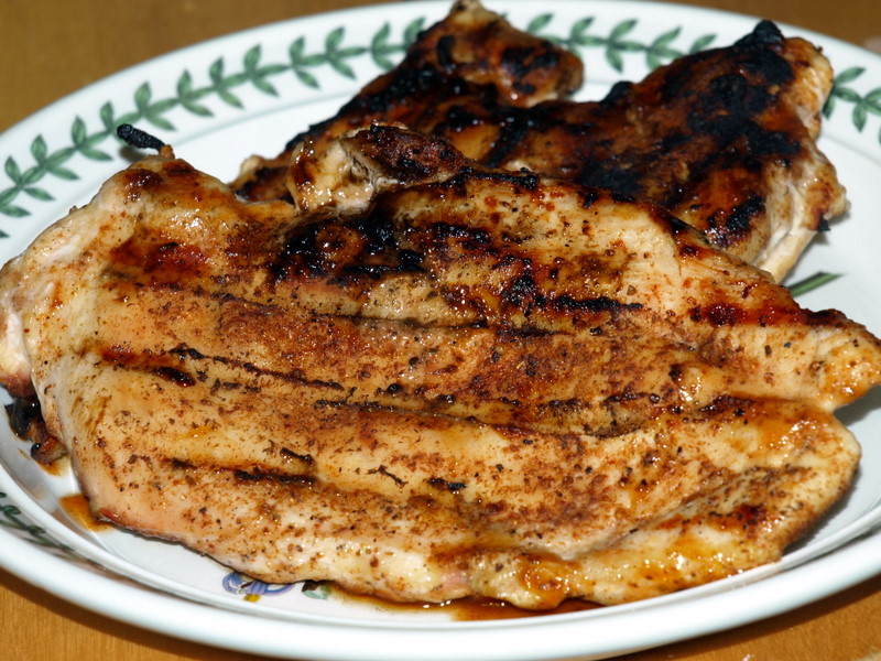 I’ve been too busy to take the rubs on a proper spin (sorry, just couldn’t resist the pun), but I did sprinkle a bit of the Raging River on boneless, skinless chicken for a quick, weeknight grill on my Mini Green Egg. Originally formulated for salmon, Raging River rub combines maple & turbinado sugars and a bouquet of spices–it “played nice” with the lean chicken without overpowering it.