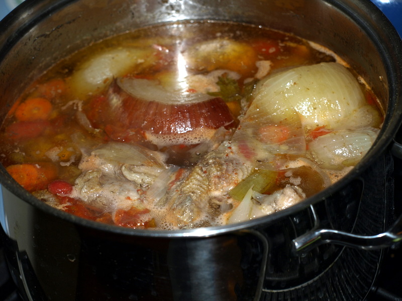 Twenty-six degrees….it was 26!!! degrees when I checked the thermometer this morning.  Brrr…wooden, raised, south Louisiana houses aren’t built for 26 degree weather.  So I’m warming up the house with a batch of chicken stock, set to simmer for hours.