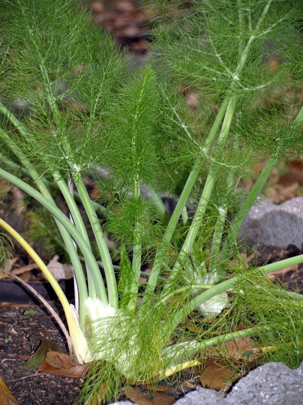 The fennel in my garden, planted back in the early fall, isn’t quite ready for harvest. It needs a few more weeks, but the bulbs should be nice-sized by the time the blood oranges are ripe. Meanwhile, I’ll settle for store-bought fennel to pair with the Louisiana Sweet oranges. Truth be told, the purchased ennel bulbs are always much larger than my homegrown.