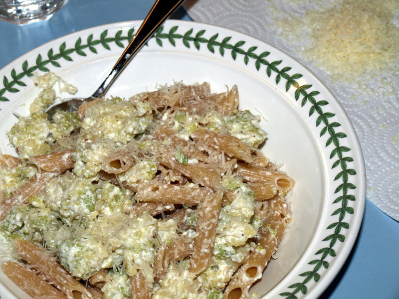 Broccolo romanesco can substitute for cauliflower in most any recipe, but I decided to treat it like the Romans do. I braised it, broken into small florets, until fork-tender with a little white wine, red pepper flakes, and a few pieces of crisped pancetta, then added whole-milk ricotta, grated pecorino, and cooked (whole wheat) penne pasta. It was a substantial dish, perfect for last week’s wintry weather.