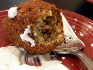 Fried kibbee, obviously handmade, offered up a tender, lightly cumin scented bulgur wheat shell encasing a savory, toasted-pine-nut studded filling.  At $2.99 for an order of two, Sara’s kibbee certainly qualifies as the one of the best $1.50 fried things ever to emerge from a gas station deep fryer.