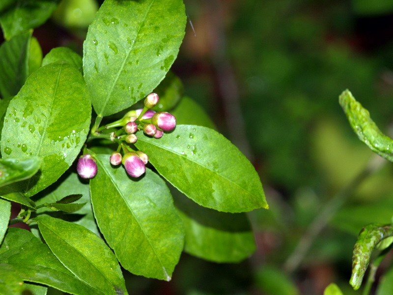 • Citrus: trees in full flower…key lime, kaffir lime, tangelo, Moro blood orange, Persian lime, Owari satsuma, Louisiana sweet orange, and Meyer improved lemon.  The Meyer lemon (pictured) is completely covered in blossoms and is thick with bees.