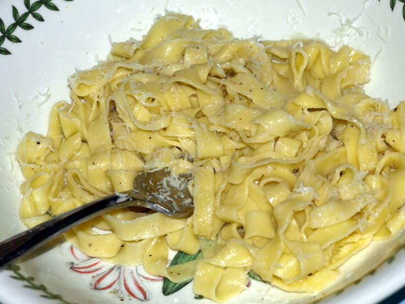 But I did slip a batch of fettucini  into boiling water, and less than 5 minutes later, I sat down to enjoy my hand- (and partly machine-) made noodles with nothing more than butter, parmesan, and cracked pepper.