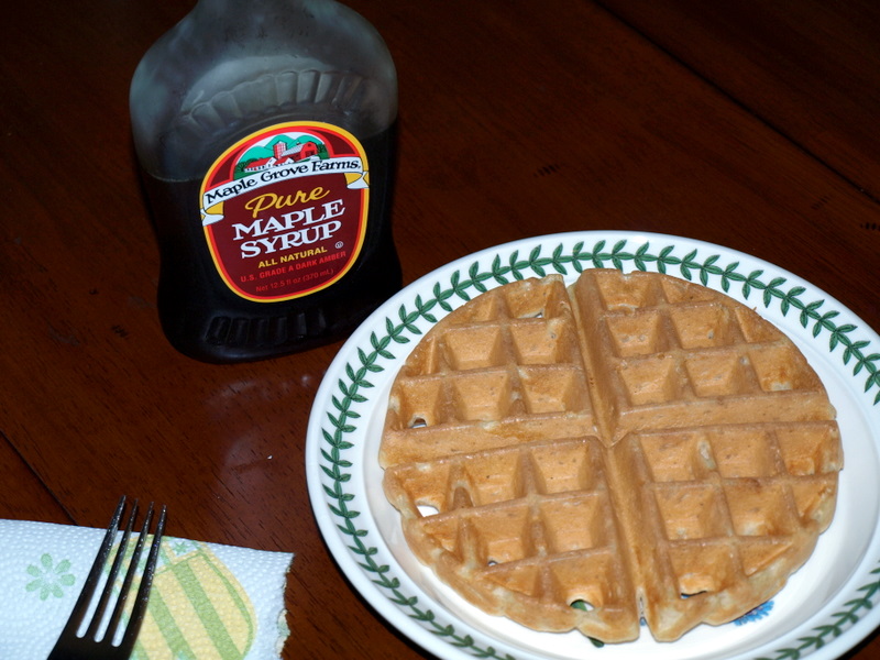 Keeping a sourdough starter fed and happy requires a certain comfort level with waste. The wee yeasties in the starter like a weekly (or at least every other week) feeding, and unless you’re baking immense, industrial quantities of bread, a portion of unused starter must be discarded at each feeding. For the quantity of starter I keep, the weekly feeding means I throw out approximately 1/4 to 1/2 cup of the culture….which happens to be the perfect amount needed for a small batch of sourdough waffles.