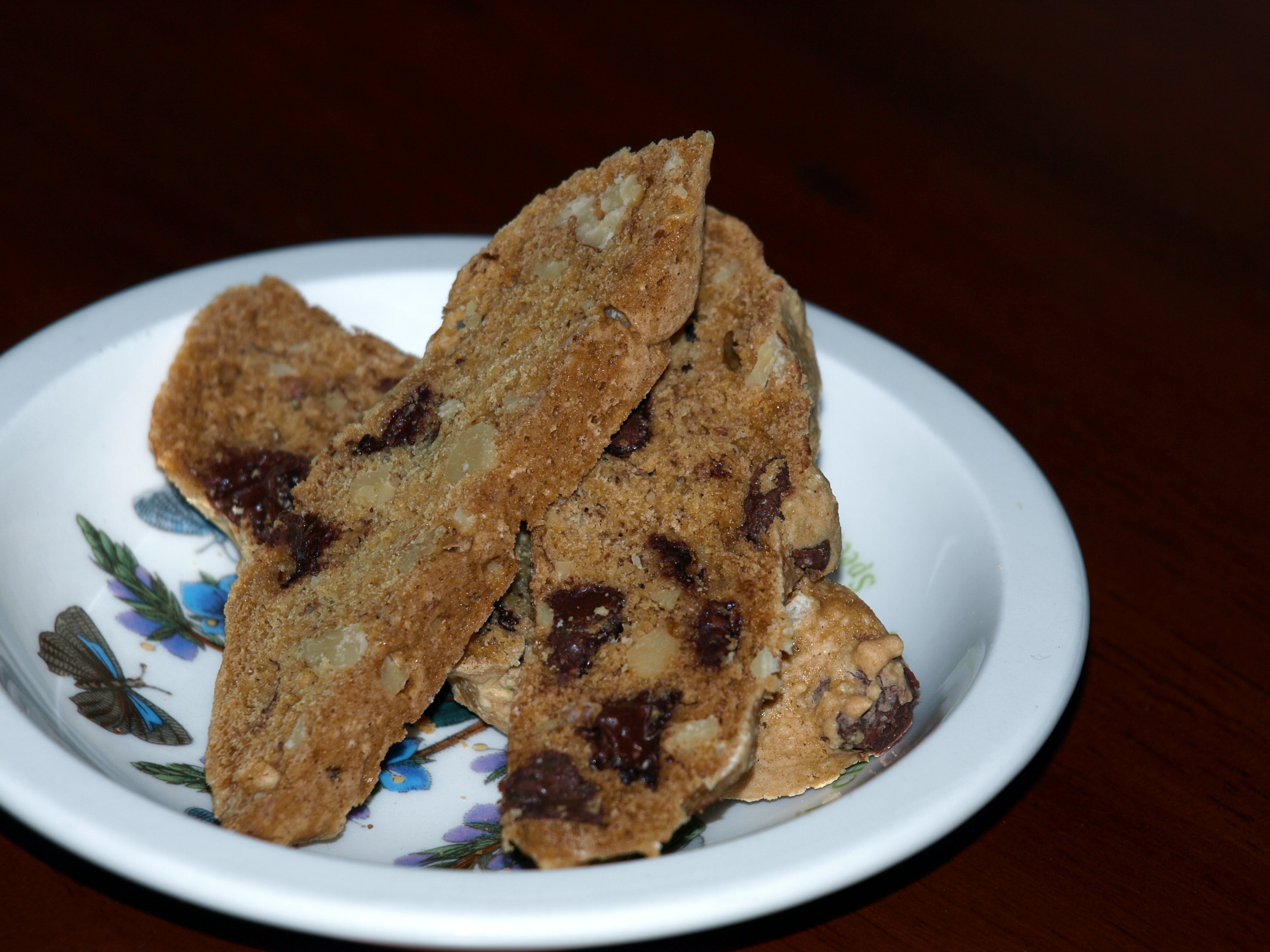 Choocolate Chip Biscotti with Less Fat (from Alice Medrich’s Chewy Gooey Crispy Crunchy)