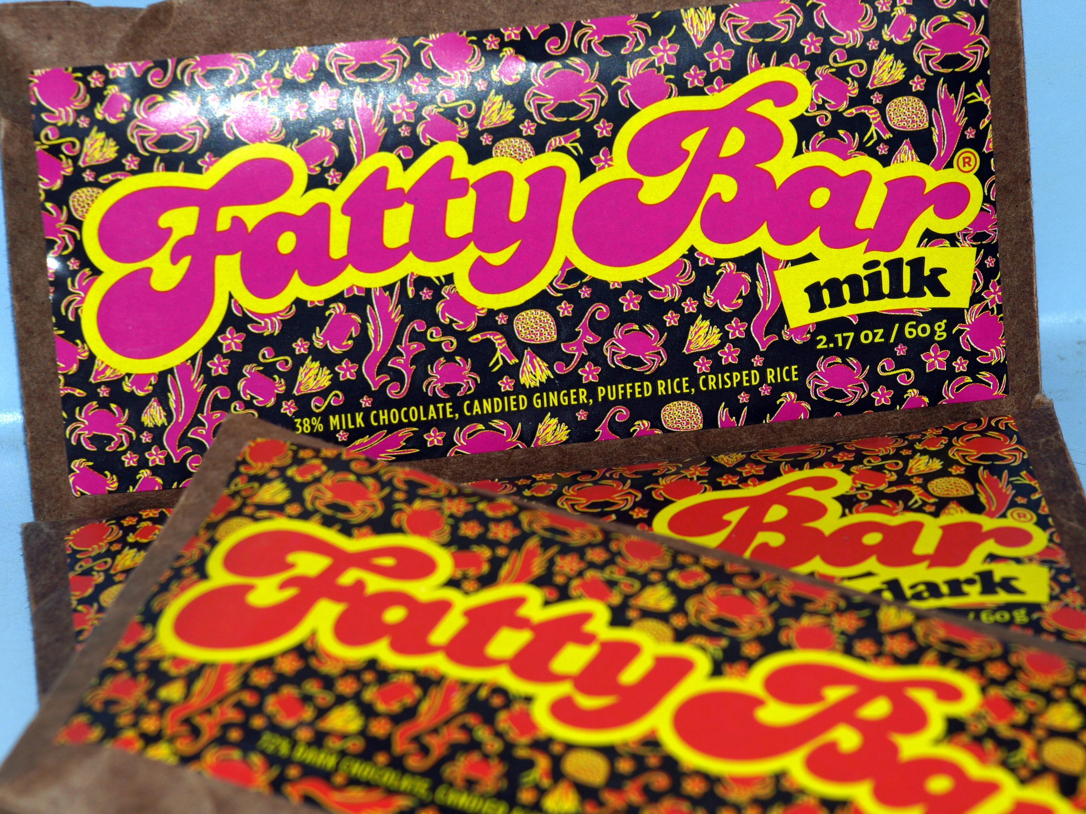 Attention, all thrifty types: Williams-Sonoma stores slash the price of food products within 30 days of the expiration date. A recent trip to W-S yielded sale-priced Guittard unsweetened chocolate feves and some Fatty Bars in milk (plus candied ginger, crisped and puffed rice) and dark (roasted almonds, chili, and maldon sea salt). The Fatty Bars are the conceptual offspring of NYC’s Fatty Crab family of restaurants, crafted and packaged by Brooklyn’s Tumbador Chocolates.