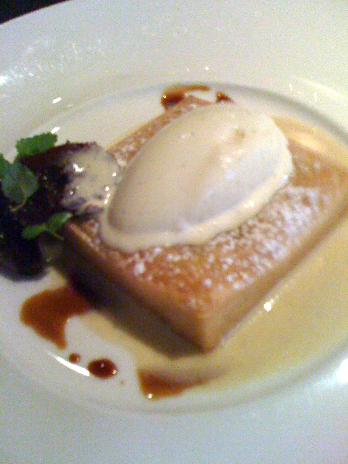 When I first looked at the menu, I doubted that my heat-flagged appetite could possibly see me through dessert, but August’s portions are appropriately luncheon sized. I opted for the Celeste fig tart (of course, and I can’t even remember the other choices offered), served with bourbon ice cream, a wisp of caramel sauce and creme anglaise, and a few mint-crowned stewed figs. An enclosed pastry case covered a near-flowing fig center. (Oddly, the dessert course seemed “full-size” rather than scaled down for lunch service, but I’m not complaining about a generous dessert portion. Ever.)