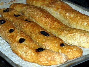 I set out to make a batch of Jim Lahey’s stecce–oblong, stick-like crusty loaves. The recipe, from Lahey’s My Bread, is a no-knead, overnight-fermented dough, typical of his recipes. I’ve made it successfully many times…though this weekend’s attempt can’t be added to that list.