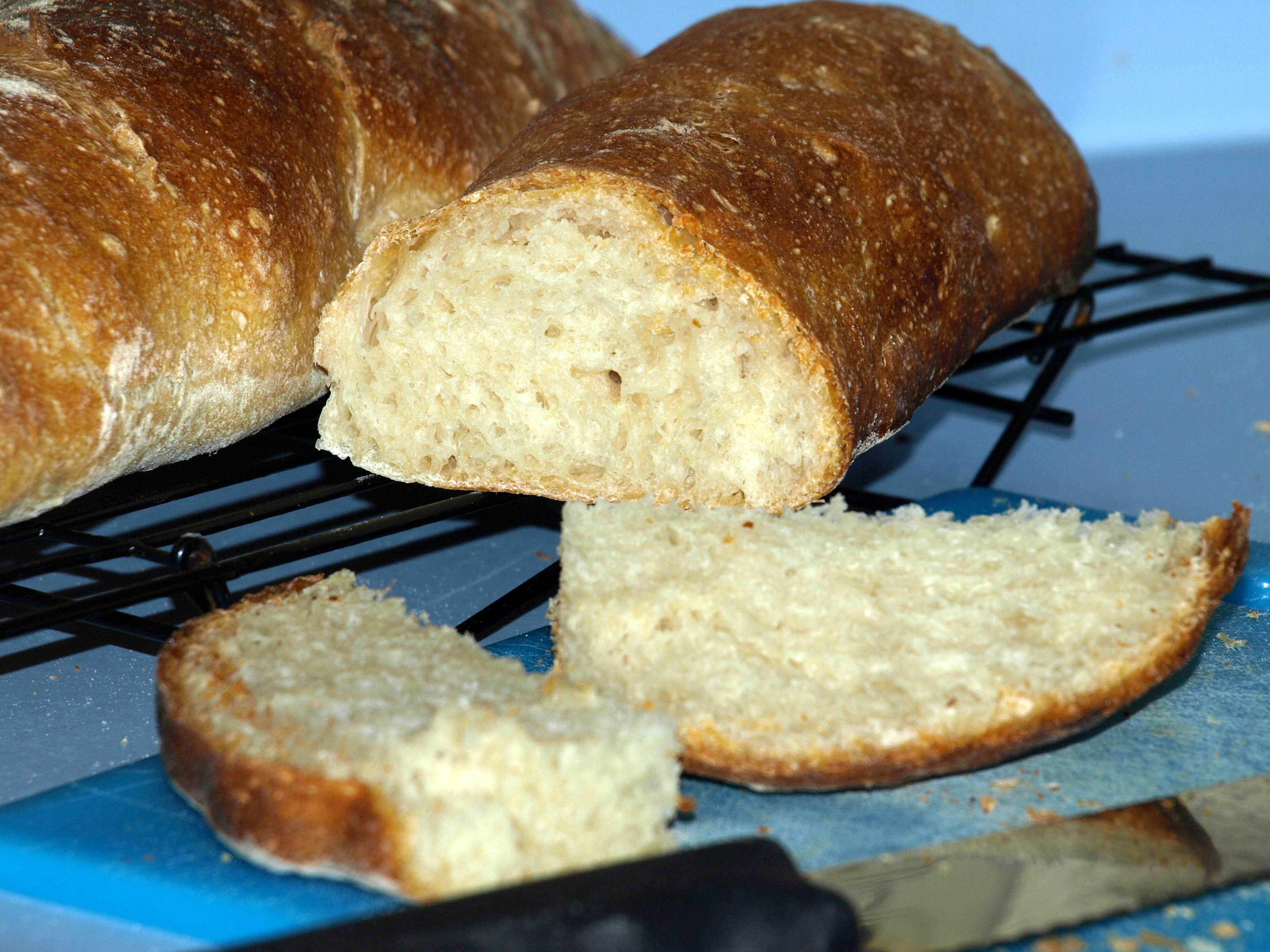 The baguettes turned out okay, though. The crust was a bit too thick: it could have used more steam.