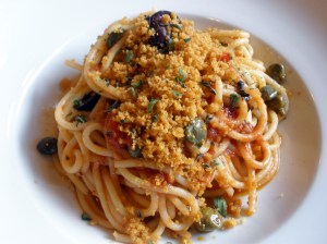Such substantial antipasto and primi meant that I couldn’t finish my pasta course, a tangy puttanesca dotted with fat capers, toasted breadcrumbs, crowning a sauce rich with anchovies and tomato. (When confronted with a dish containing capers, I am powerless to resist.)