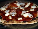 I will definitely be repeating both the crust and the cooking method…and now I’m motivated to get a piece of (clean, nicely finished) sheet steel.  Apparently, using steel will allow me to skip the transfer step:  steel heats quickly and transfers its heat very quickly to the dough.  I should be able to put it on the top shelf and combine the bottom-cooking and top-browning steps into one.