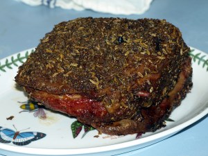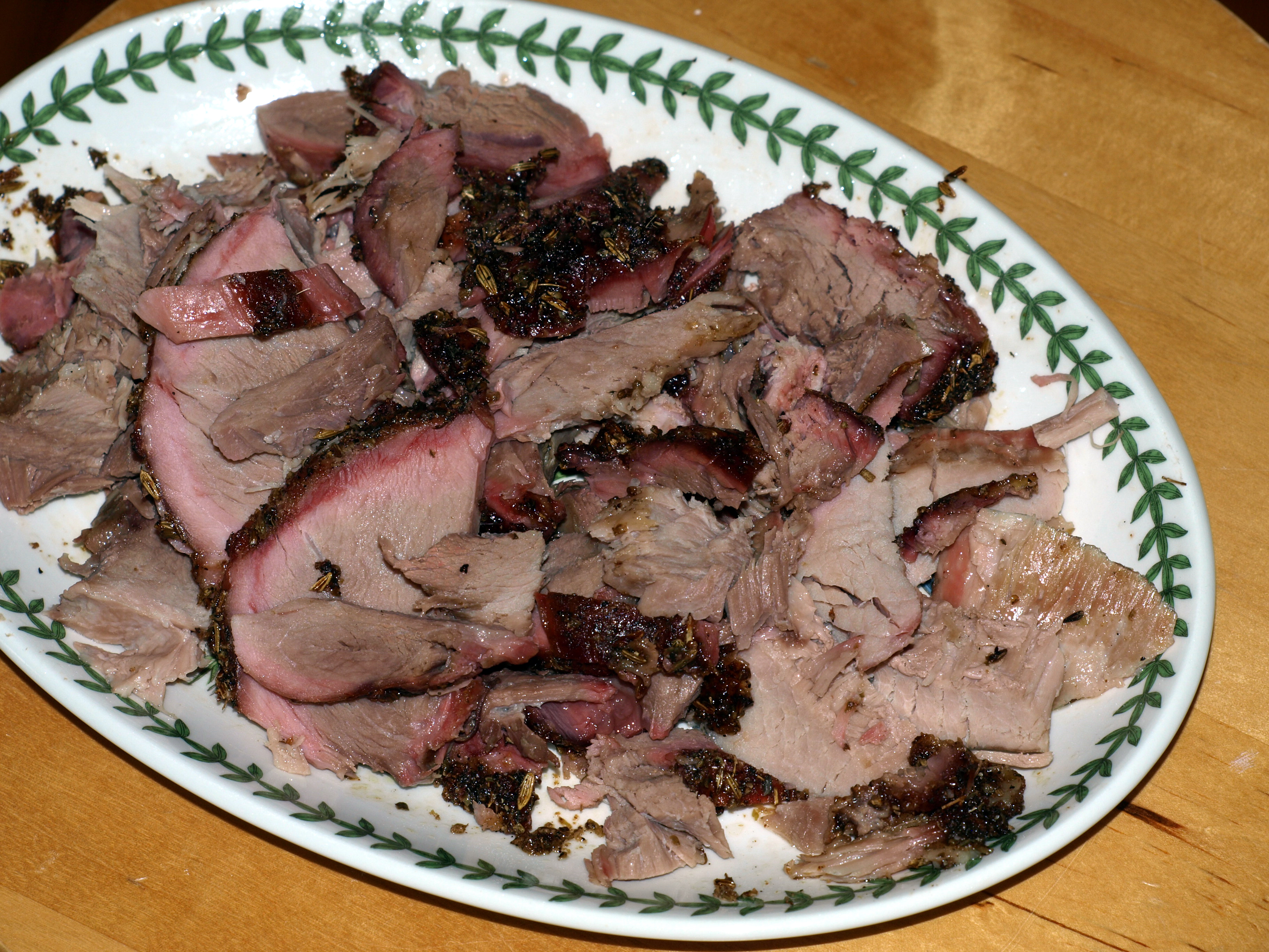 In another departure from pulled pork tradition, I did make rough slices rather than pull it into ragged shreds. (Somehow, it seemed more elegant and Italian to slice rather than shred.) Regardless of the cut, the finished pork was fragrant with fennel, sage, and rosemary, and it had developed a nice bark despite the seasoning blend’s conspicuous lack of sugar. It needed no sauce but hunger, and it paired beautifully with rosemary roasted potatoes and sauteed arugula.