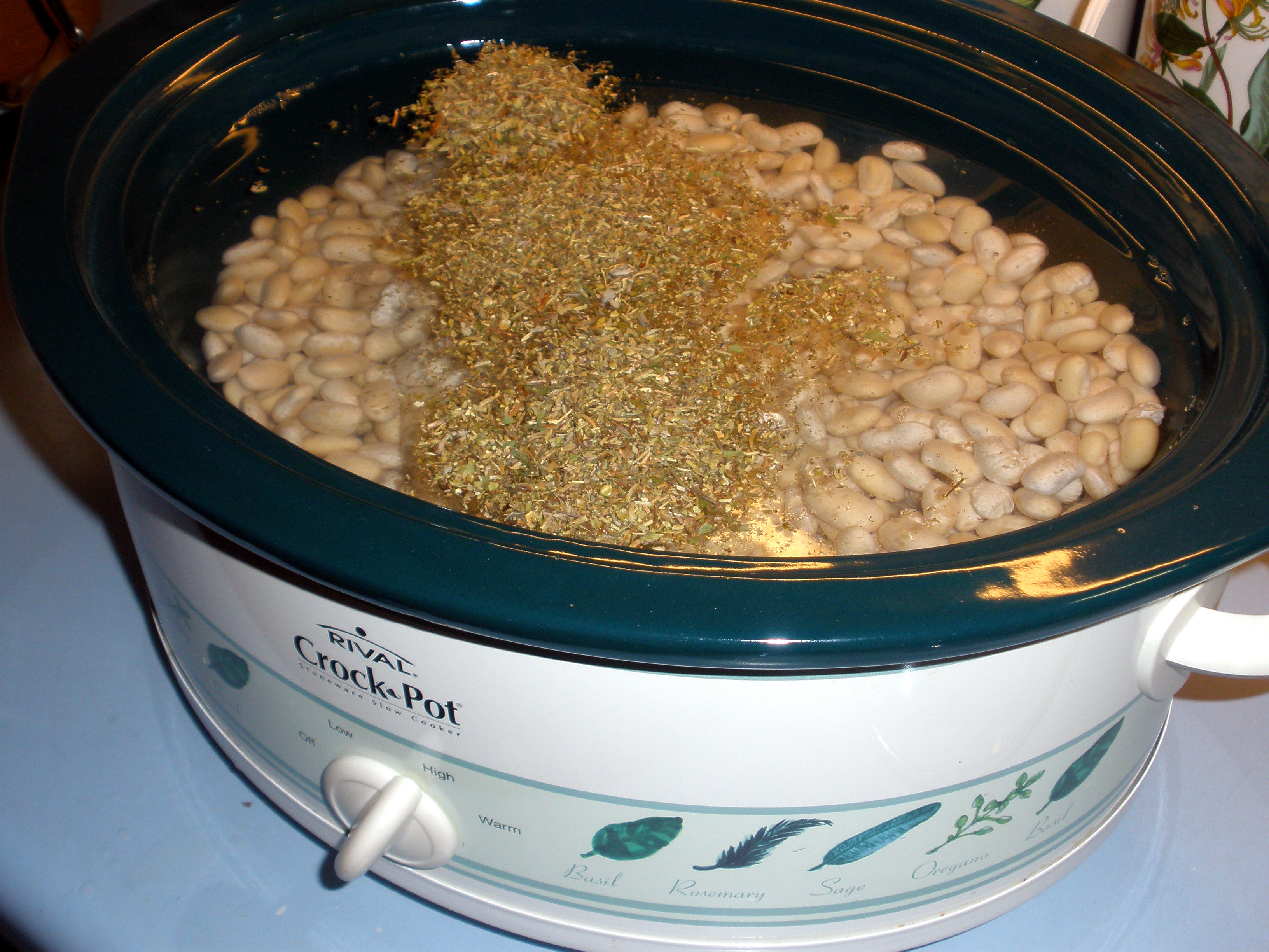 A $2.29 can of beans finally ended my crockpot cooking avoidance. I enjoy plump, Italian cannellini beans (see here and here), and the price of canned cannellinis just went up to $2.79….for beans? Are you kidding me? Most other canned beans are in the sub-$1 price range; I can’t understand why the cannellinis are more expensive. They’re not imported, organic, or “special” in any way I can discern from the label or contents; my best guess is the beans aren’t as popular as other varieties, so less turnover and competition leads to higher prices. (But I’m no bean economist; maybe the raw materials are, in fact, more expensive than black beans or red kidneys.)
