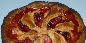 The pie onslaught continues: a few weeks ago, I chronicled Mr. Bouillie’s newfound pursuit of pie baking. He’s still at it, six weeks later. So far, he’s tackled apple pie (double crust and crumb topped), fresh-fruit strawberry balsamic pie, chocolate ganache tart, bourbon pecan pie, chocolate pecan pie, and a cooked-fruit double crust strawberry pie made with a whole wheat pastry flour crust (pictured). Plus, I have a freezer full of ready-to-bake crusts.