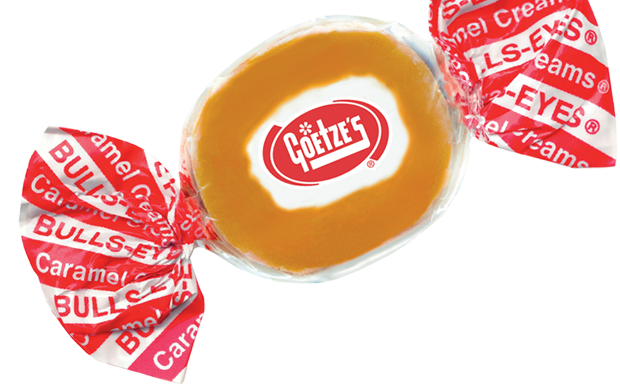 Pictured at left: Goetze’s Bullseye Caramel Creams. How on earth did I make it through life thus far without discovering the Bullseye Caramel Cream? Chewy caramel surrounds a fluffy vanilla cream center. Goetze’s, founded in Baltimore, MD in 1895, has made the original vanilla cream flavor since 1917. The full flavor range includes strawberry, chocolate, double chocolate, caramel apple, and licorice. If a single, bite-sized caramel cream isn’t sufficient for your sweet tooth, the company also makes Cow Tales, an elongated, straw-shaped caramel filled with cream.